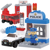 ブロックでパトカーや警察署、消防車などを組み立てて出動!ごっこ遊びに夢中♪